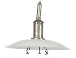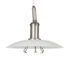 “PH 3½/3”. Pendant with nickel-plated bayonet socket house, shade holder with wire legs, multi layer opal glass top shade. Stamped P.H.-3/100, Patented. Manufactured by Louis Poulsen in 1930s. Diam. 33 cm.