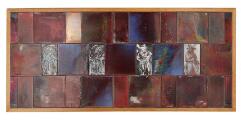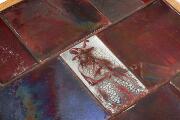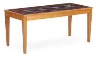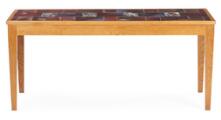 Rektangulært flisebord af eg. Top med polykrome fliser af Jens Thirslund. Udført hos snedkermester Frits Henningsen. H. 51. L. 116. B. 52,5.