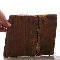 Wear due to age and use. Cracks in the wood, in two pieces. Larger peelings and missing pieces.