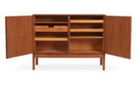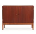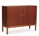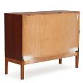 Sideboard of teak, with frame of oak. Front with two doors behind which drawers. Manufactured by C. M. Madsen for FDB. H. 94. W. 122. D. 45 cm.