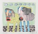 Figurer. Sign. Sylvester, 194/300. Håndkoloreret litografi i farver. Bladstørrelse 20×18. Uindrammet. Samt bogen “Mig og de andre”. (2)