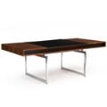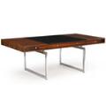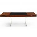 Freestanding Brazilian rosewood desk with chromed steel frame. Cassette-shaped top with unoriginal removable center section covered with black leather four integrated drawers in apron with steel handles. Central lock mechanism. Designed 1959. This example manufactured circa 1970s by E. Pedersen & Søn. H. 71 cm. L. 183 cm. W. 91 cm.