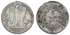 Frankrig, Louis XVI, 1774–1792, Ecu An 4 / 1792 B, Rouen, KM 615.3, Konsulat, 5 Francs An 5 K (1796–97), Bordeaux, KM 639.5, begge med monteringsspor. (2)