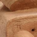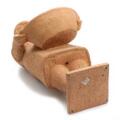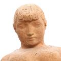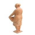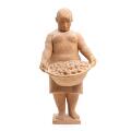 Kvinde med frugtfad. Signeret monogram. Uglaseret lertøj. H. 63 cm.