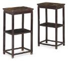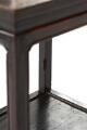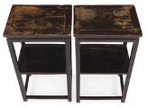 A pair of tall Chinese hardwood side tables with remnants of lacquer. Early 20th century. H. 83 cm. W. 44 cm. D. 33 cm. (2).