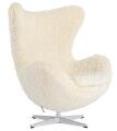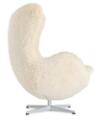 “The Egg Chair”. Easy chair with base of satin polished aluminum with tilt function. Sides, back and loose seat cushion upholstered with lambskin. Model 3316. Designed 1958. Manufactured by Fritz Hansen, 21st century.