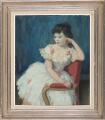 Sitting ballerina. Signed H. Helme. Oil on canvas. 55.5×47 cm.