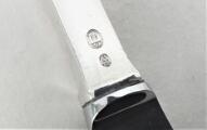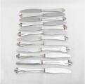 “H. C. Andersen”. 12 middagsknive med skafter af sølv. Udført hos Horsens Sølvvarefabrik/W. & S. Sørensen. Vægt ca. 865 g. L. 21,5. (12)