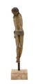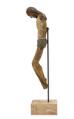 Figur af bemalet buksbom i form af den korsfæstede Kristus. På base af Jerusalemsten. Danmark, ca. 1500. H. 40 cm.