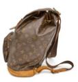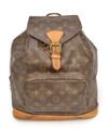 “Montsouris” rygsæk af brunt monogram kanvas med brune læderbesætninger, gyldne beslag, to justerbare stropper, en udvendig lynlås lomme, et rum med snorelukning, en indvendig lomme og brunt stof for. H. 35 x B. 30 x D. 15 cm. 1997.