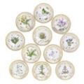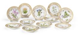 “Flora Danica” 11 kuvertskåle af porcelæn dekorerede i farver og guld med blomster. 3501. Royal Copenhagen. Diam. 7,5 cm. (11)