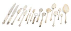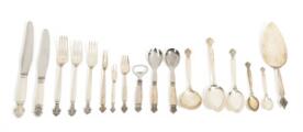 “Acanthus”. Sterling silver and silver cutlerty. Georg Jensen 1915–1930, 1933–1944 and after 1945. Weight excluding pieces with steel 2170 g. (58)
