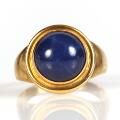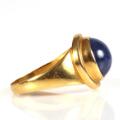 A sapphire ring set with a synthetic star sapphire, mounted in 18k gold. Size 54.