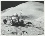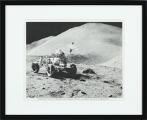 An original NASA b&w offset photolandingsgraph from the Apollo 15 Mission in July/August 1971. In the picture astronaut David R. Scott (b. 1932) can be seen peparing the mission's moon car, the Lunar Roving Vehicle. In the background the 4,000 meter high Hadley Delta. Black painted woioden frame with acid-free passe-partout. Visible size 20×25 cm. Frame size 30×37 cm.