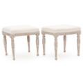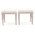 Et par gustavianske taburetter af bemalet træ, buet sarg udskåret med bladværk og rosetter, runde tilspidsede ben. Usignerede. Sverige. 18. årh.s slutning. (2)