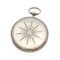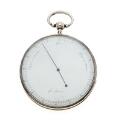 Jacques Frédéric Houriet lommetermometer i kasse af sølv, hvid skive med små arabertal, skala “Degrés de condensation - Glace - Degrés de dilatation”, signeret Fred. Houriet. Ca. 1810. Vægt 112 gr. Kassediam. 61 mm.