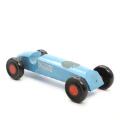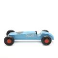 Bugatti. Legetøjsbil af lyseblåt træ med hjul af træ. L. 30.