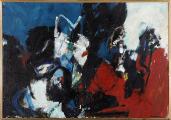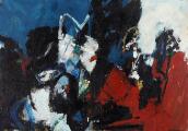 “Fra byen”, 1965. Signeret Lindemann. Olie på lærred. 82×117.