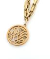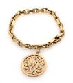 Armbånd af 14 kt. guld med charm/vedhæng af 14 kt. guld prydet med monogram. Vægt i alt ca. 46 g. Diam. ca. 3,0 cm. L. ca. 19 cm.