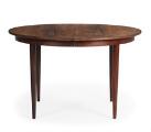 Cirkulært spisebord af palisander, to tillægsplader uden sarg medfølger. H. 75. L. 120/220 cm. (3)
