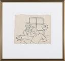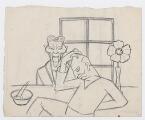 Interior with two men. Signed Heerup. Pencil on paper. Sheet size 20×26 cm.