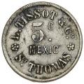Dansk Vestindien, L. Tissot & Co., 5 Cents, Sieg 55, Higgie 458 - sjælden