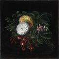Bouquet with dahlia and fuchsia. Unsigned. Oil on canvas. 30.5×30.5 cm. Unframed.