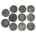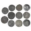 Frederik I, 1523–1533, Ribe, søsling 1524, 1525, G 73, Aalborg, søsling 1524, G 76, København, søsling 1524, 1524, G 57A-B, Landskrona, søsling 1524, G 66C, Malmø, søsling 1524, 1525, 1526, G 63, Ronneby, søsling 1525, G 67, as well as the variant with miscut date 65, Sieg 14.3, corroded, in total 11 pcs - all different
