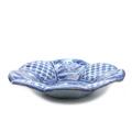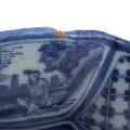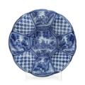 Tysk bukkelfad af fajance, dekoreret i blåt med kineserier og fletværk. Ca. 1700. Diam. 33.