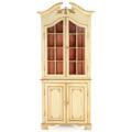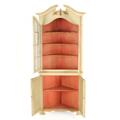 Rococo hjørneskab af bemalet og guldstafferet træ, svanehalsformet top, front med to vitrinelåger og to fyldningslåger. 18. årh. H. 221. B. 97. D. 51.