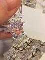 3 rødvin med mindre/minimale afslag ved fodhjørner, 1 rødvin med større afslag på fodkant og knap, 1 vandglas med mindre afslag ved fodrand, 1 hvidvin muligvis med let slebet fod på ene side (minimalt), 1 hvidvin med afslag på fodhjørne, 3 hedvin med mindre afslag på knap, 1 hedvin med lidt større afslag på knap, 1 hedvin med minimal flig på knap, 1 hedvin med lille rids under fod, 2 hedvin med mindre afslag på fodhjørne.