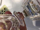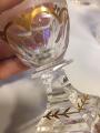 “Odelberg” Kosta krystalglasbesætning, cuppa dekoreret med harlekintern og guld, på firsidet trappeformet fod, dekoreret med bladranke. Sverige, 20. årh. Karaffel eks. prop 23 cm, glas 9,5–15 cm. (56)