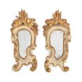 Et par små italienske spejle af bemalet og forgyldt træ. Rokokoform, 19. årh.s slutning. H. 44. B. 20. (2).