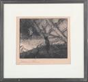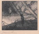 Cat and owl. Signed Johannes Larsen. Woodcut. Visible size 18.5×21 cm.