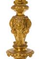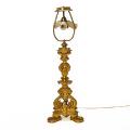 Fransk bordlampe af forgyldt bronze, gueridonformet, støbt med maskaroner og volutter, på trepas fodstykker i form af ørneklør. 19. årh.s slutning. H. 48/72 cm.