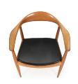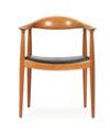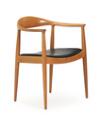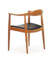 “The Chair” was first presented at the Copenhagen Cabinetmakers' 23th Guild Exhibition at Design Museum Denmark 1949, in a version with woven cane in seat and back, the year after this version with upholstered seat came out. “The Chair” was used by John F. Kennedy and Richard Nixon at the legendary televised debates during the presidential election in 1960.
