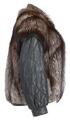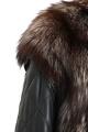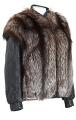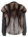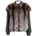 A fur jacket of racoon and black quilted leather with press button closures on the front, two pockets and black interior lining. The sleeves can be zipped off, so it can be worn as a vest. Length app. 66 cm, across chest 120 cm, sleeve length 55 cm. Size 38.