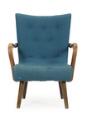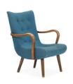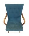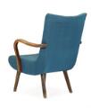 Lænestol med ben og armlæn af bejdset bøg, betrukket med blåt uld. 1930–40'erne.