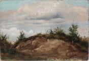Field landscape with a couple standing on a hill. Unsigned. Oil on paper laid on cardboard. Sheet size 19×28.5 cm. Unframed.