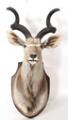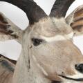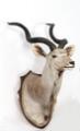 A kudu head (Tragelaphus strepsciceros) monted on an oakwood board. H. 144 cm. W. 64 cm. D. 97 cm.