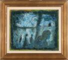 “Broen og de søgende skygger”, 1965. Signed on the reverse with title and date. Oil on canvas. 46×56 cm.