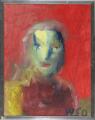 Ansigt, 1983 Signeret WSO, dateret på bagsiden 1983. Olie på malepap. 35×27 cm.