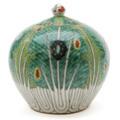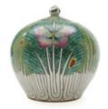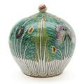 Kinesisk kålhovede bojan af porcelæn, dekoreret i emaljefarver, lågknop med ferskengren og flagermus. Sen Qing/Republik. H. 20 cm.