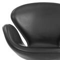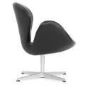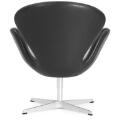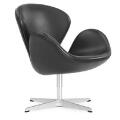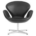 “Svanen”. Hvilestol med drejefunktion, fod af aluminium og stamme af stål. Sæde, sider og ryg betrukket med sort skind. Model 3320. Formgivet 1958. Udført og mærket hos Fritz Hansen, 2006.