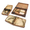 French clitograph of brass and iron. Marked J. Lefebvre à Paris, Breveté S.G.D.G., INV. des Clitographes. And two brass direction quadrants. In wooden cases. quadrants. Early 20th century. H. 16. L. 17 cm. (3)