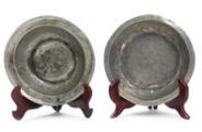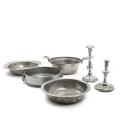 A collection of 18/19th century petwer, comprising four bowls and two candlestick holders with baluster shaped stems. Partly stamped. Diam. 23–34. H. 6–23 cm. (6)