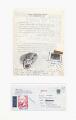 Uden titel. Brev med lille collage, 21. september 1979. Sign. Ray. Bladstørrelse 28×21. Indrammet sammen med kuvert adresseret til Svend Hansen, København. Rammemål 53×35.