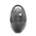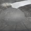 Oval vase af klart glas med indlagt sort netmønster. Sign. T.M. 2007. L. 40.