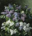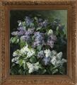 “Hvide og lilla Syrener”. Sign. E. Thornam. Olie på lærred. 68×60,5 cm.