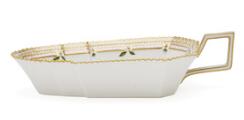 “Flora Danica” porcelain dish, decorated in colours and gold with flowers. 3542. Royal Copenhagen. L. 16 cm.